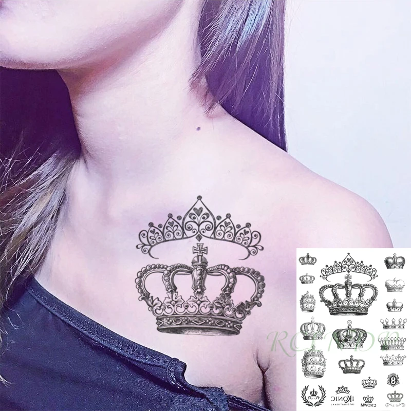 Waterproof Temporary Tattoo Sticker Crown Big Size Black Flash Tatoo Fake Hand Arm Leg Body Art Tatto For Girl Men Women Temporary Tattoos Aliexpress